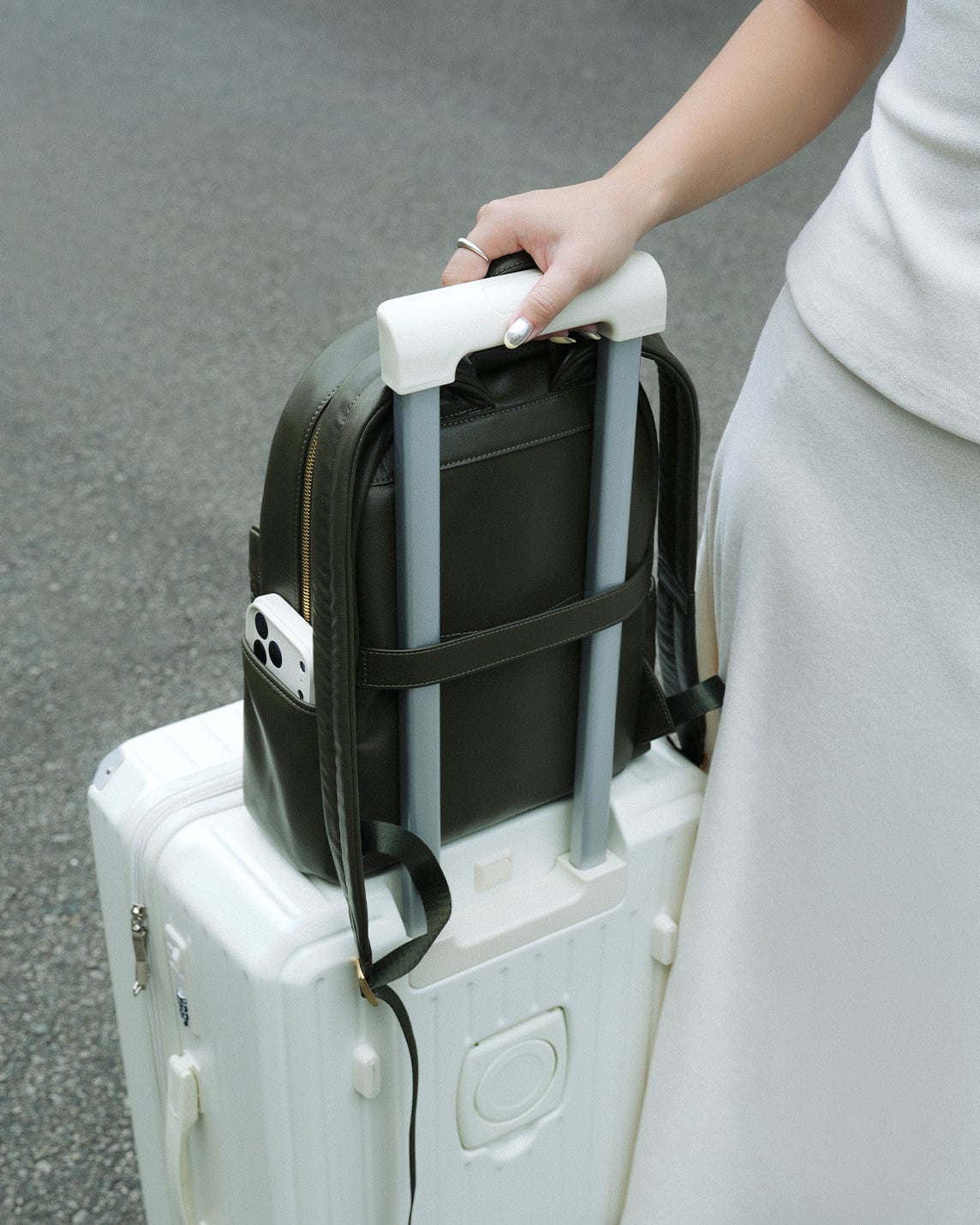 Easily slide the backpack over your suitcase handle for smooth, hands-free travels.