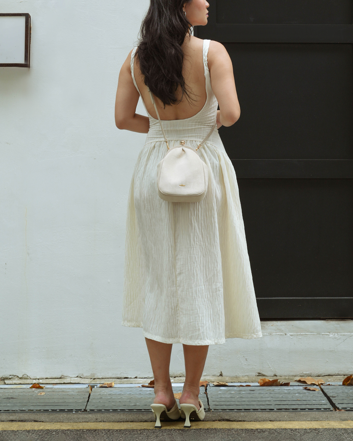 A charming puffed shape top handle designed for effortless, easygoing days. Inside, you’ll find a dedicated phone compartment and a gusseted pocket for your everyday tech and essentials. Its luxurious suede finish adds a refined touch, ideal for classy brunches or relaxed evening outings. Clip on the long adjustable strap to wear it hands-free.