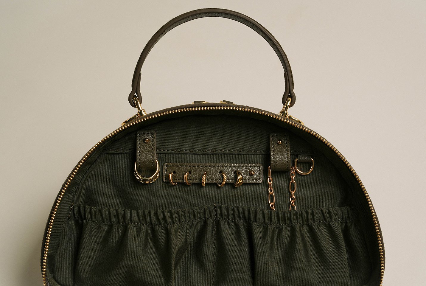 A built-in earrings holder protects your pieces on the go