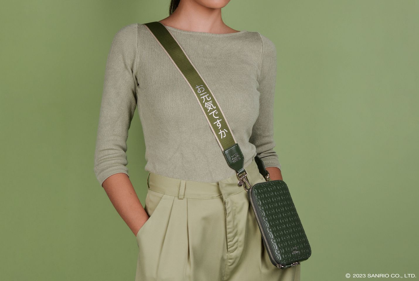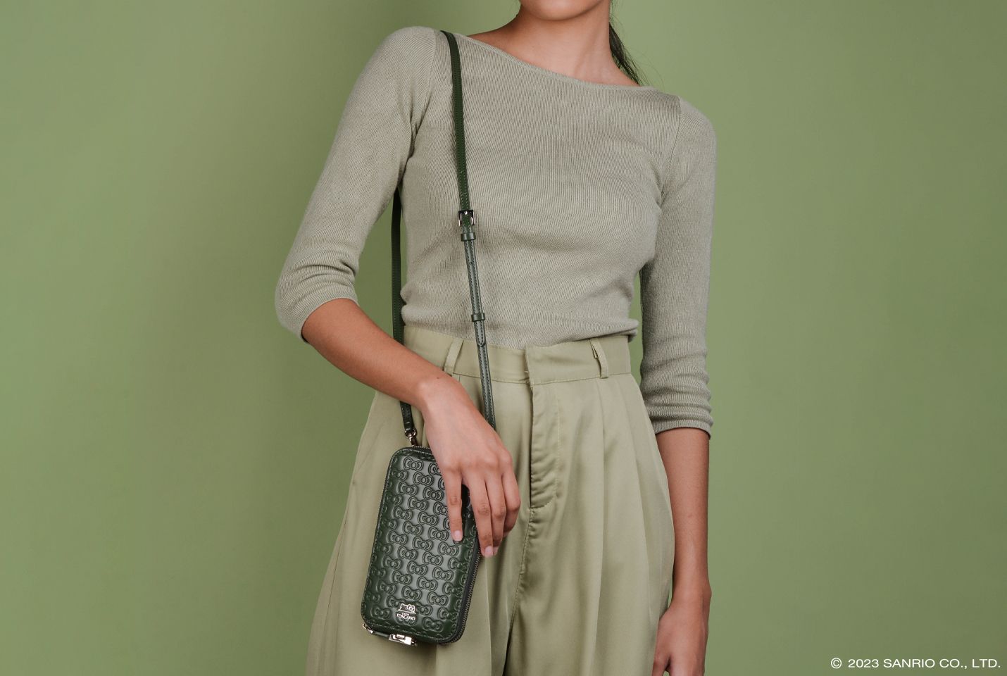 Fuss-free and lightweight, our mobile phone bag is a must-have for anyone. A textured exterior monogram of Hello Kitty’s signature bow keeps things cheery and stylish. It offers a phone slot, 5 card slots and a cash compartment lined with four relatable Hello Kitty expressions. A magnetic zipper puller complete with Hello Kitty detailing perks you up while ensuring your essentials stay secure all day. Go bold by pairing it with the striking Genki Bag Strap.