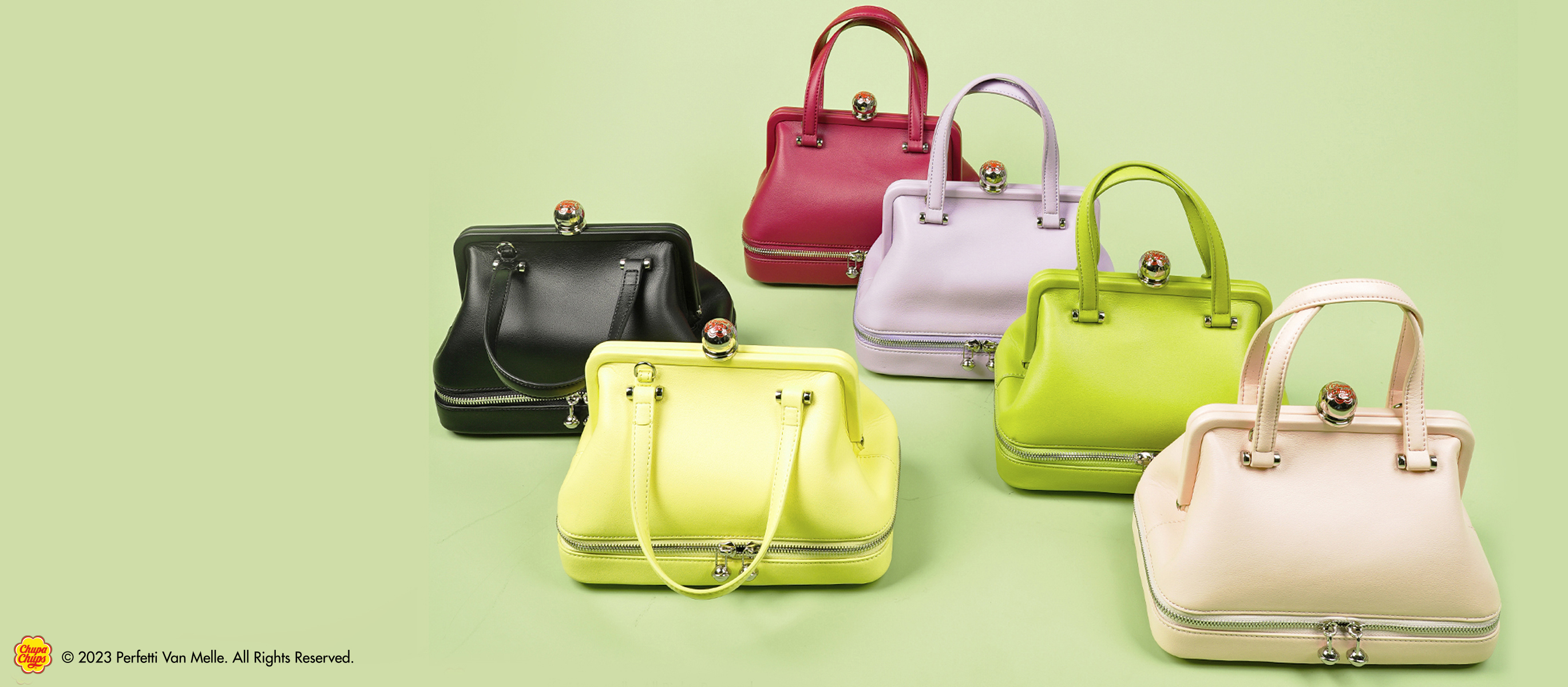 Bold and luxe, this timeless silhouette is sure to be a conversation-starter. It features a top clasp closure with the iconic Chupa Chups logo engraved in red, lollipop-shaped zipper pullers and a vivid lollipop-patterned interior lining. This satchel has a roomy top compartment with a slip pocket and zip pocket for storing essentials. It also has a bottom zip compartment which opens fully, with 3 elastic pockets for securing items like your lipstick and more. Make this satchel a standout piece in your ensemble or purchase an adjustable bag strap add-on for a more casual look.