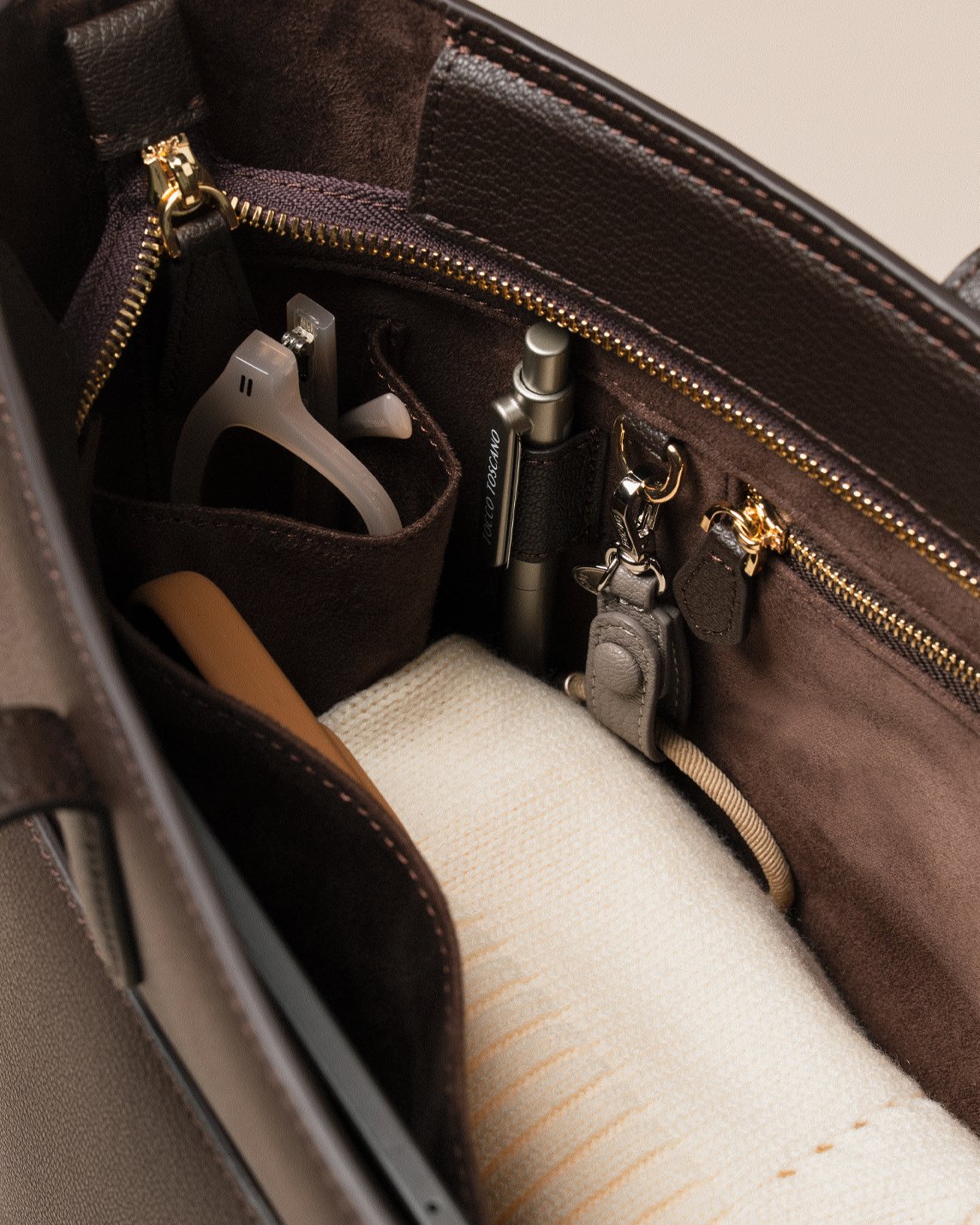 Tiny things, secured in style—thanks to our signature inner D-ring and curated add-ons.