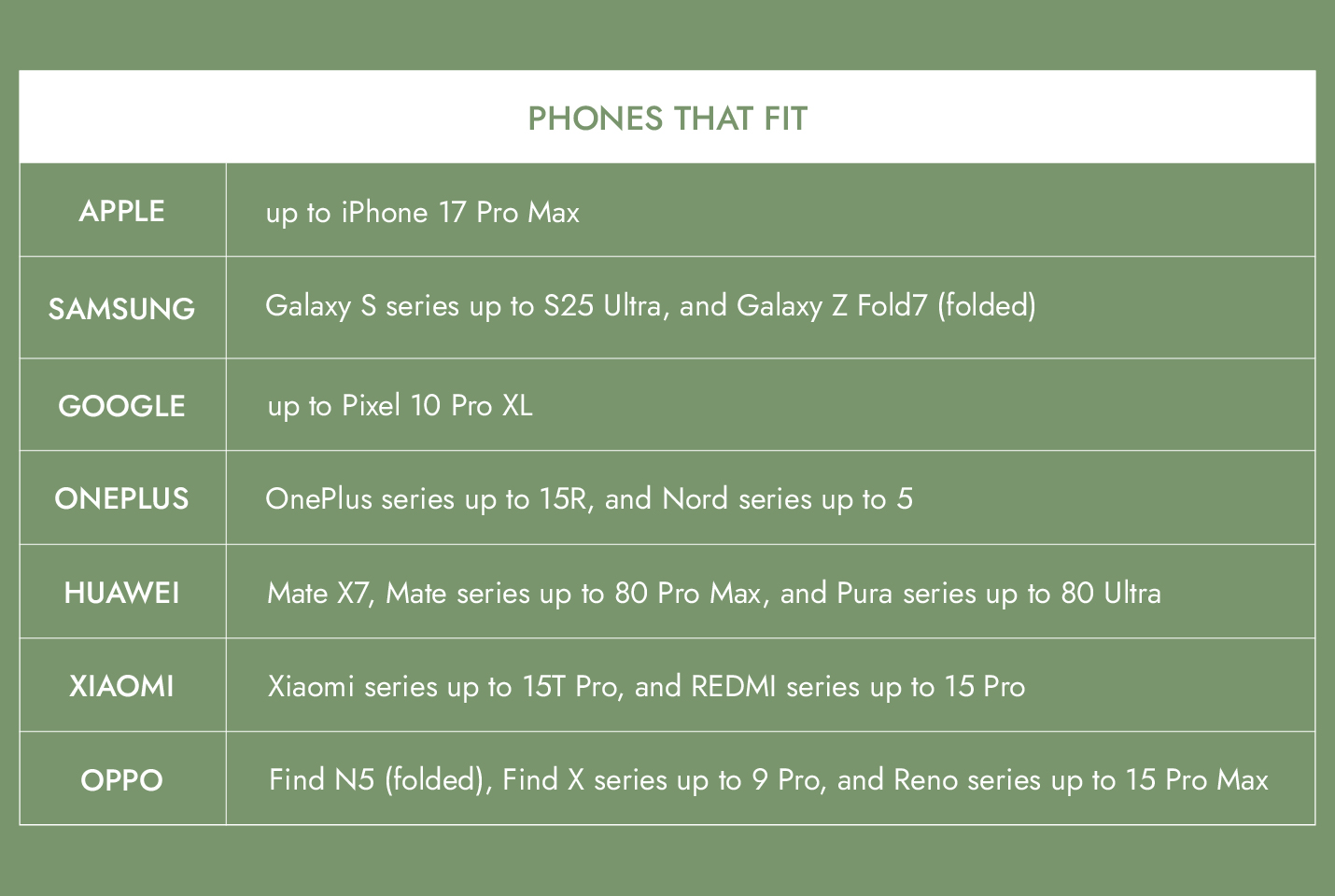 Refer to the guide to see which phones fit perfectly in this bag.