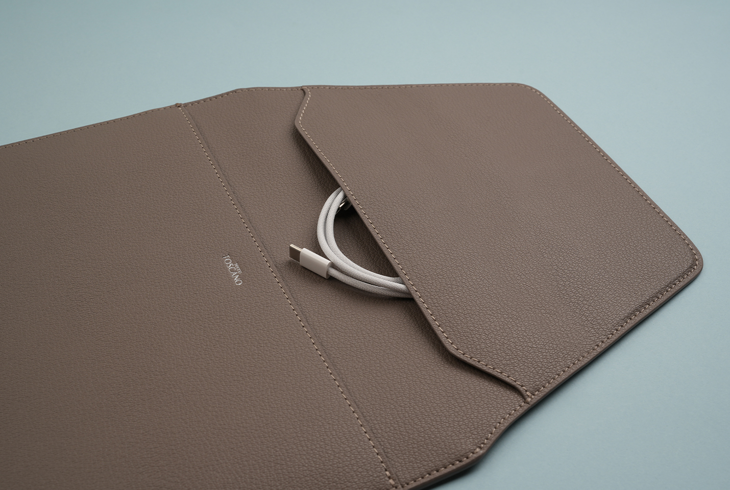 Safeguard your laptop in a functional, luxurious, and vegan-friendly sleeve.