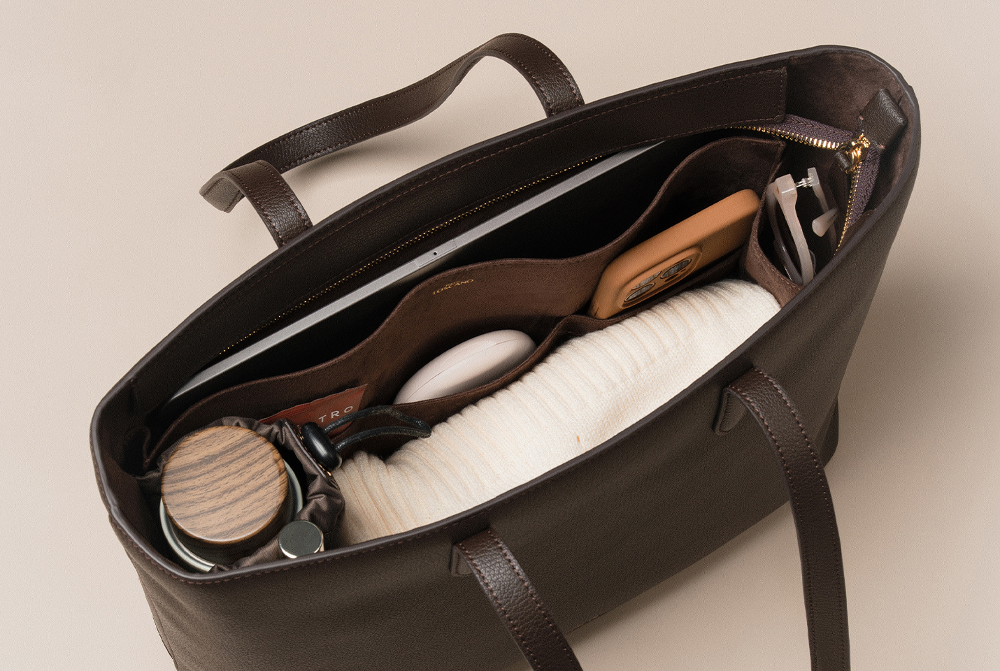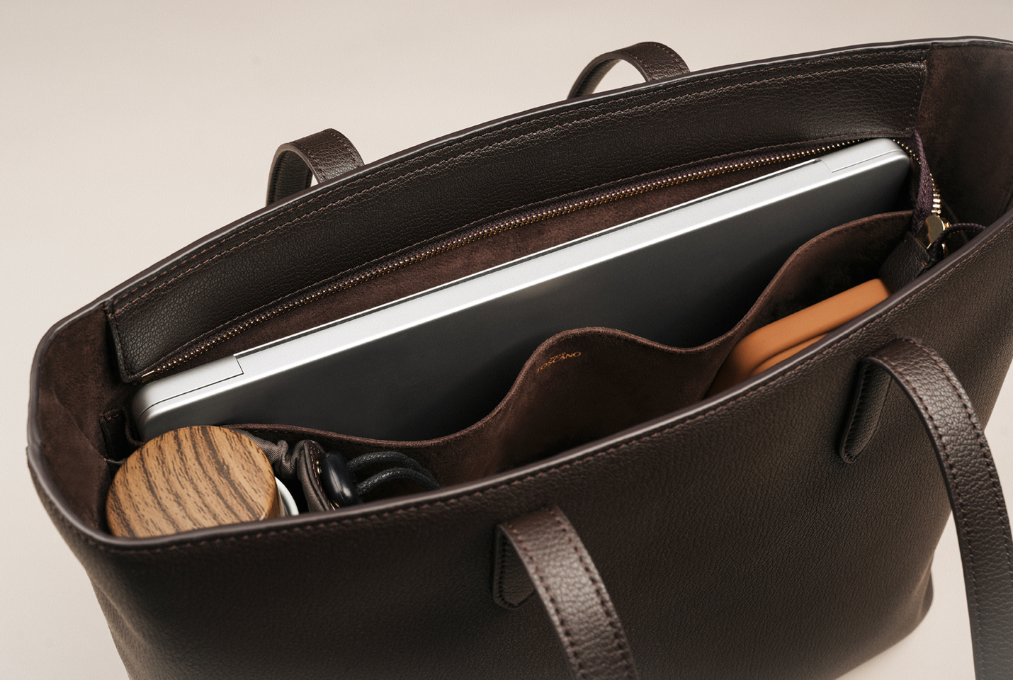 Everything you loved—now with the extras you’ve been asking for. This updated tote keeps its signature organisational compartments and introduces a top zip for security, a back pocket that can be converted into a luggage slot, more interior pockets, and a plush suede lining for an elevated finish. Perfect for workdays, business trips, and everything in between.