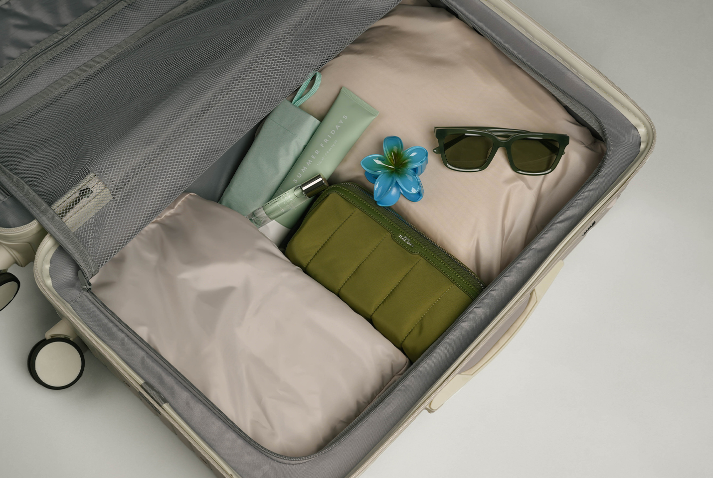 It’s designed to lay flat when unzipped, giving you a full view of your makeup for quicker prep.