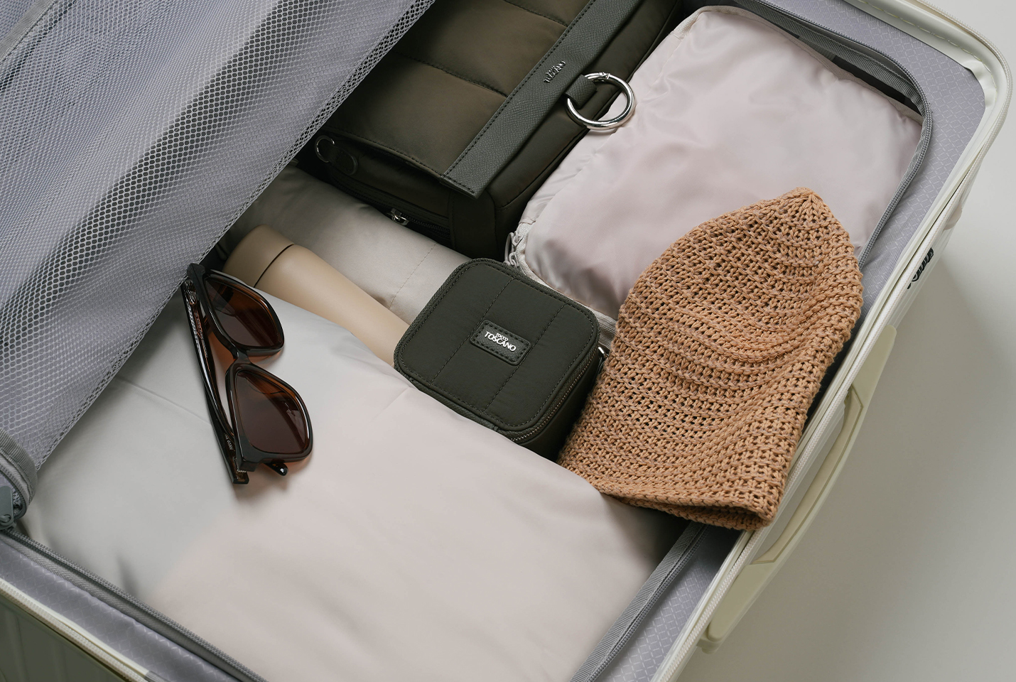 With more practical tabs and a pocket, this separate pouch keeps your go-to pieces organised and easy to bring along.