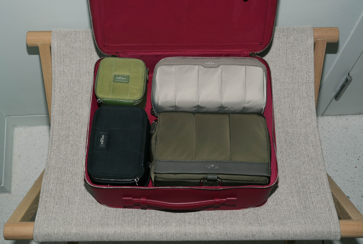 The Elle Toiletry Bag fits perfectly in the Elle Travel Organiser—alongside the Elle Cosmetic Bag, Elle Tech Case and Elle Jewellery Case.
