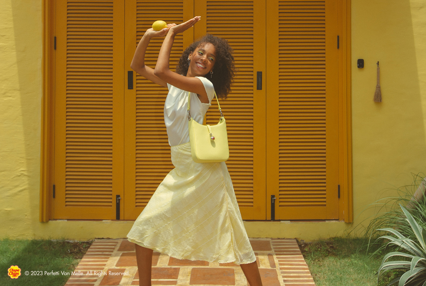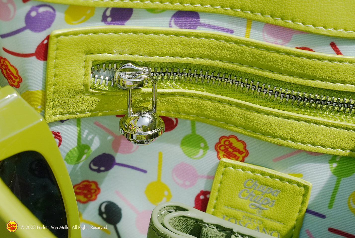 Be delighted by a lollipop-patterned interior lining and a charming lollipop zipper puller.