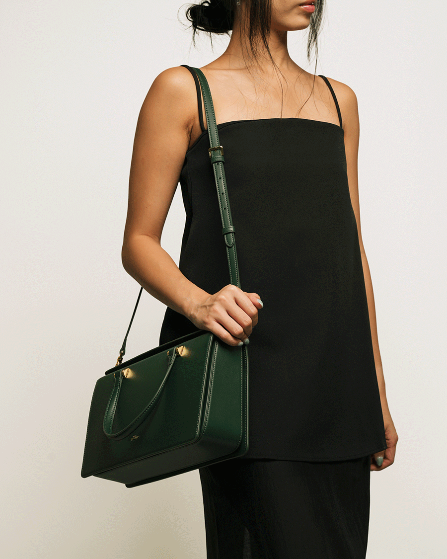 This structured satchel features three spacious compartments, smart interior slots, and a quick-access back pocket. The magnetic top flap keeps things secure while offering seamless entry. Attach the longer bag strap to switch up your carry.