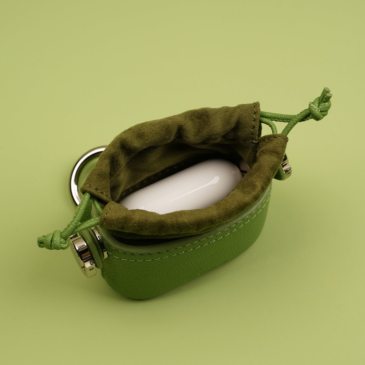 Keep your AirPods secure with this bold and vegan-friendly AirPods Bag. This compact piece features a rotatable handle, a detachable spring ring, and a drawstring to keep its contents safe. Use it as a stylish bag charm by hooking it onto your everyday bag or show it off as a micro bag—simply add on a bag strap or chain to your purchase.