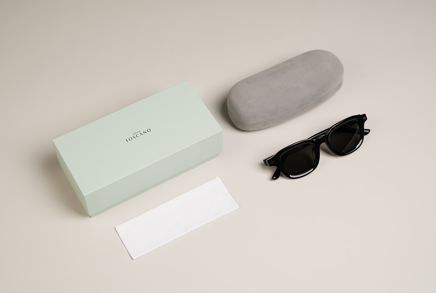 Each pair of sunglasses comes with a sturdy eyewear case and a cleaning cloth.