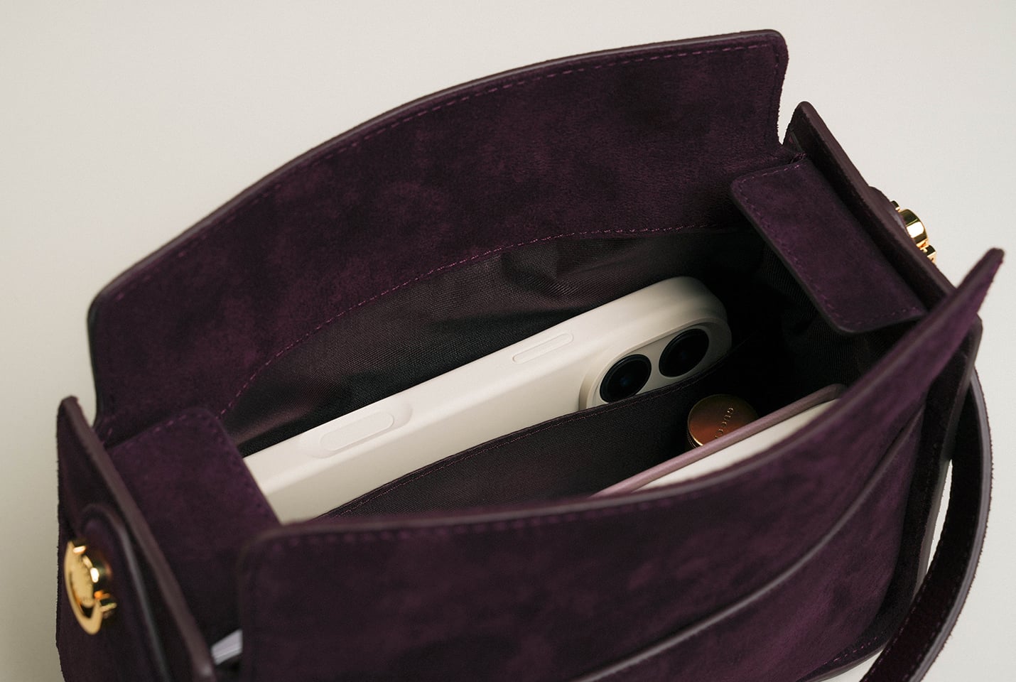 The divider strap keeps your phone and other essentials neatly separated.