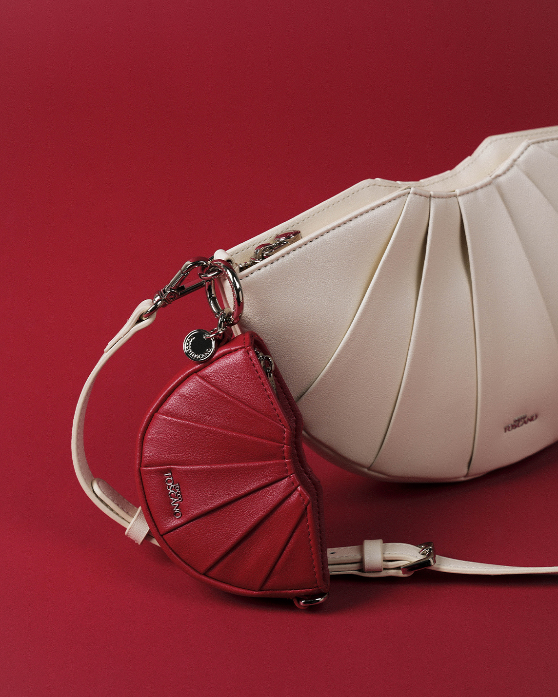 The clutch’s round shape and elegant folds channel the beauty of the classic folding fan, adding a delicate and festive touch—perfect for evoking the spirit of the season.