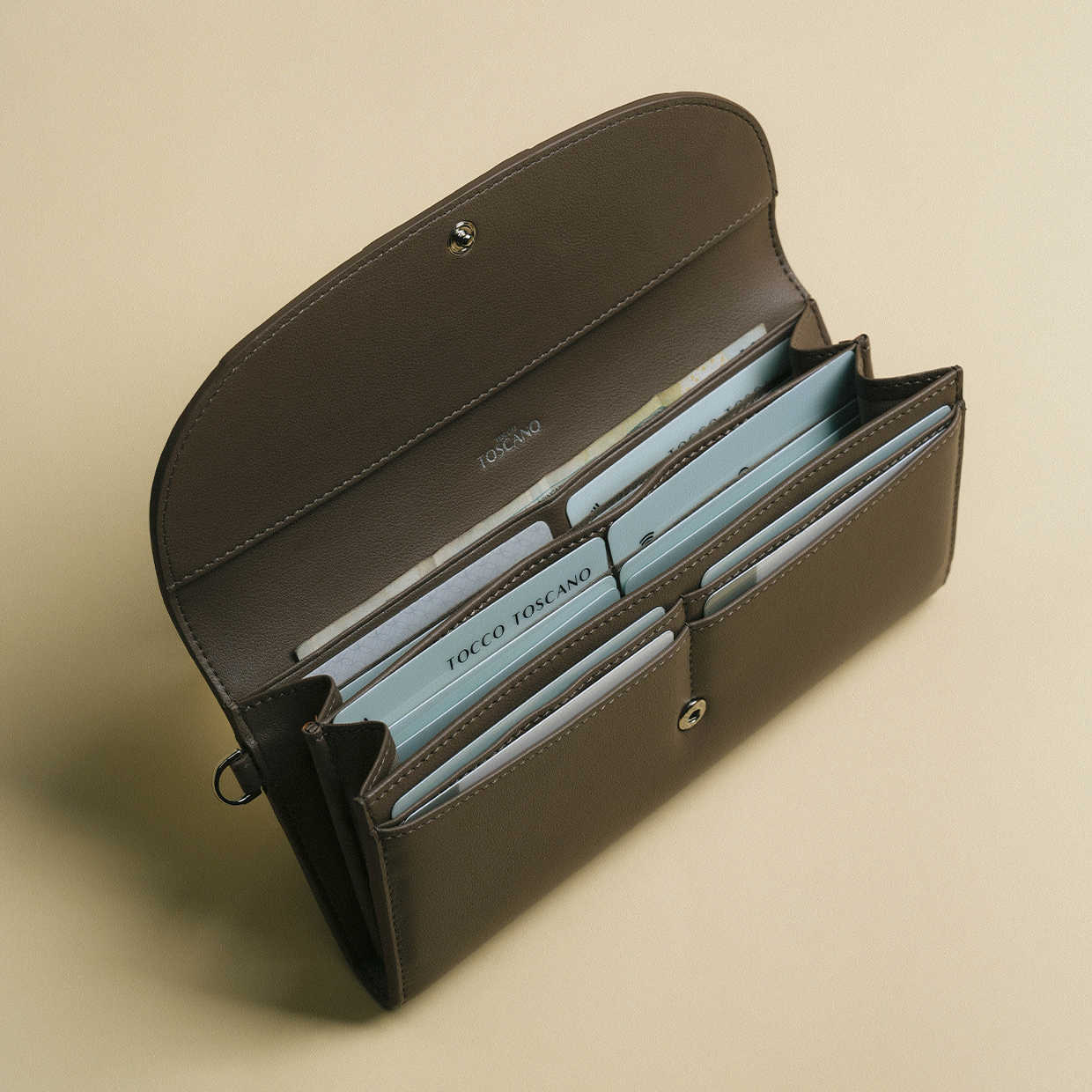 With bold pleats inspired by the classic folding fan, this wallet is a true festive-ready essential. It features 16 card slots, two note compartments, slip pockets, and a zip compartment for coins—perfect for organising all your daily essentials.