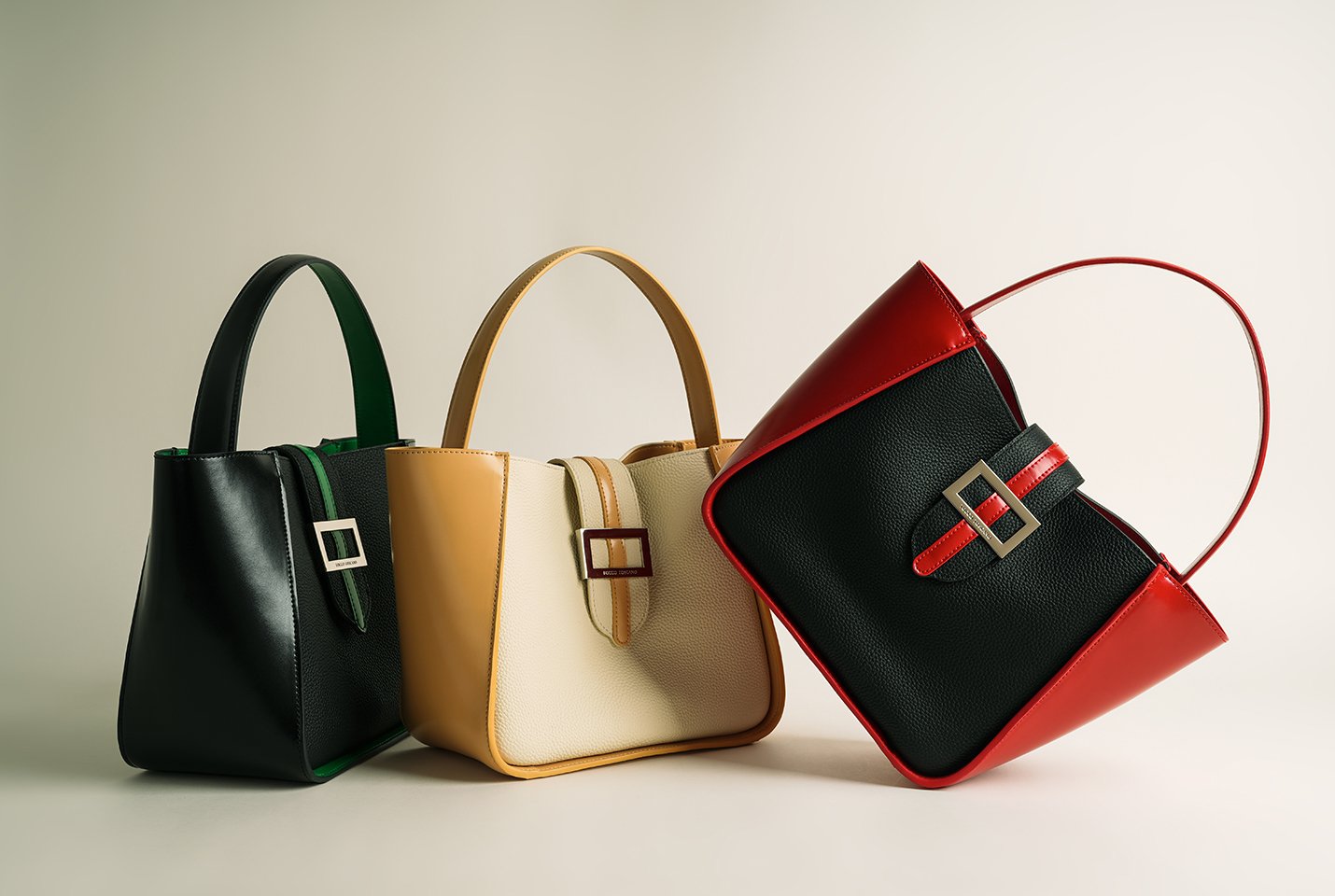 Make your get-togethers unforgettable. This trio of Mahjong Trapeze Bags, symbolising a 'pong' of Red Dragon tiles, elegantly depicts the tile's character (中) on each bag's flap. There's plenty of room for your must-haves—simply load your bag and let it be the centre of the conversation.