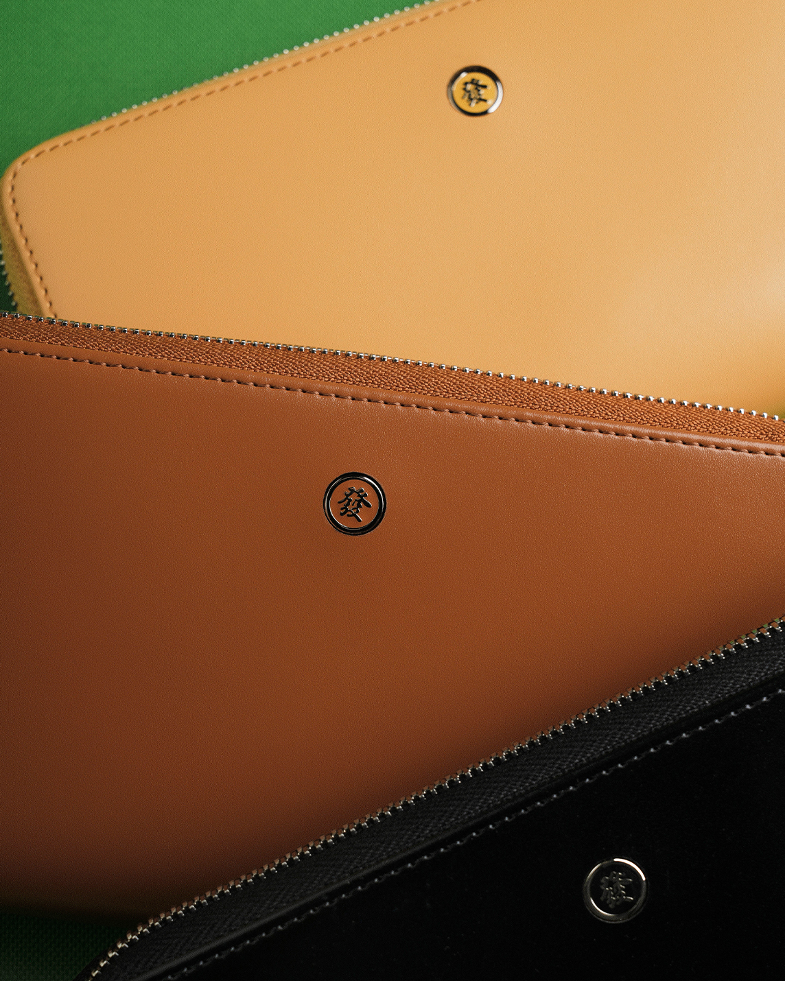 Sleek, bold, and doubles as a clutch—made for the festive season. Mahjong-inspired details, like the enamel Green Dragon tile (發) logo and White Dragon tile zipper puller, add a playful flair to this minimalist wallet. With two main compartments and a zip pocket, there's ample space for cash, cards, coins, and a little bit more.