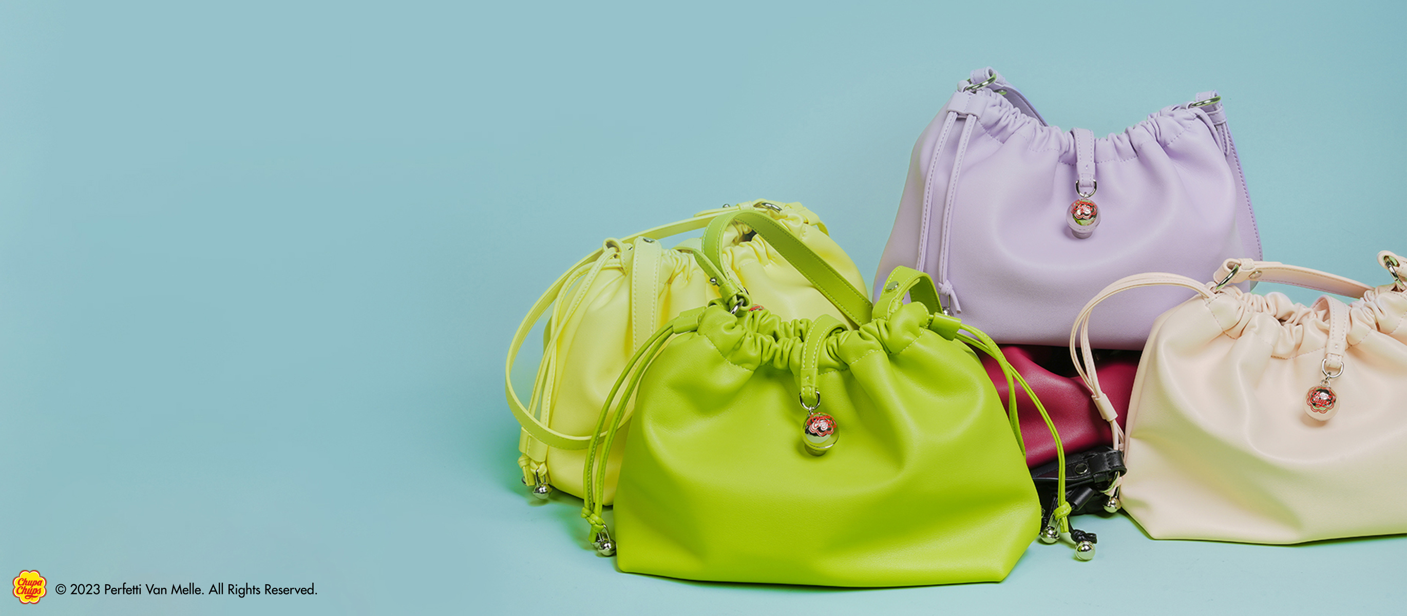 Whether it’s brunch or late night plans, this slouchy silhouette has got you covered. It features a drawstring closure adorned with mini lollipops and an additional magnetic clasp embellished with the iconic Chupa Chups logo. Its interior is colourfully patterned with lollipops, and it has a lipstick holder, pen holder, zip pocket and slip pocket for daily essentials. Wear this versatile piece as a cool clutch or as a chic shoulder bag—for crossbody carrying, purchase an add-on strap.