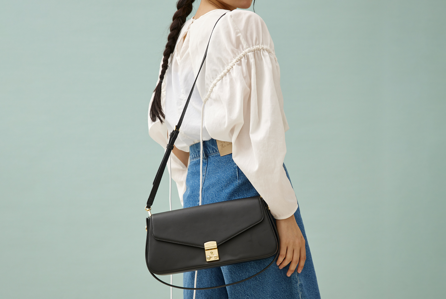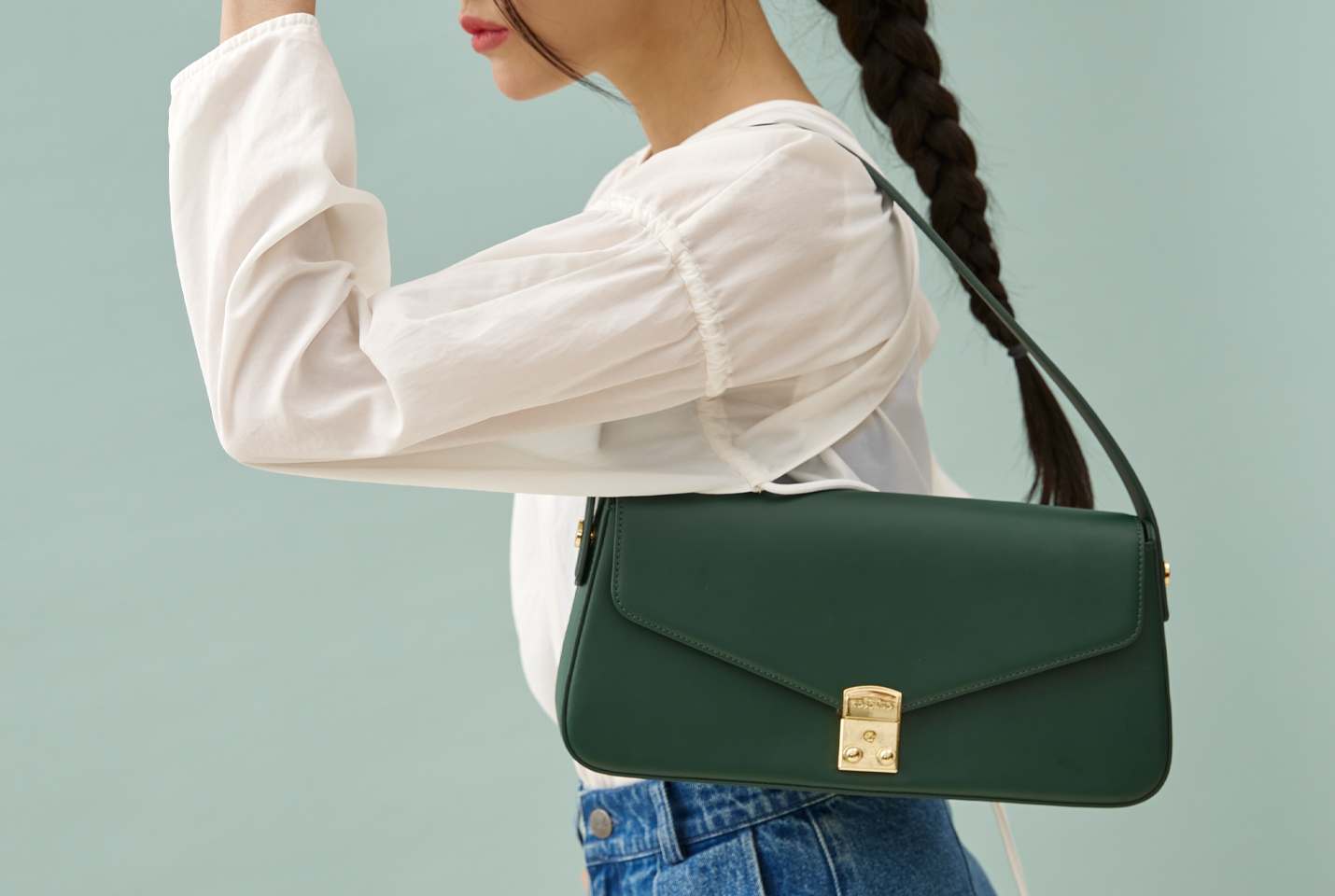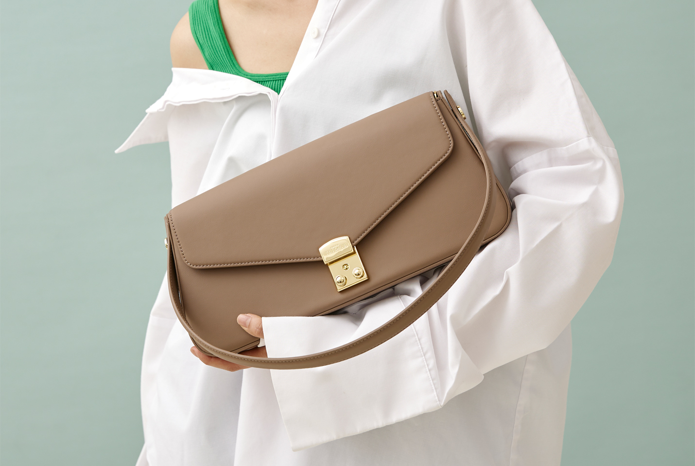 Understated elegance meets versatility in the gorgeous Willow Hugger. A unique envelope flap and striking metallic gold lock closure adds an interesting visual element while its smooth apple leather finish guarantees impeccable style. It has plenty of room, with a gusseted pocket for your phone and a zip pocket for other essentials. Store your travel card in the back slip pocket for easy travels. This hugger also features a rotatable handle—carry it as a clutch or convert it into a crossbody by purchasing the adjustable bag strap add-on.
