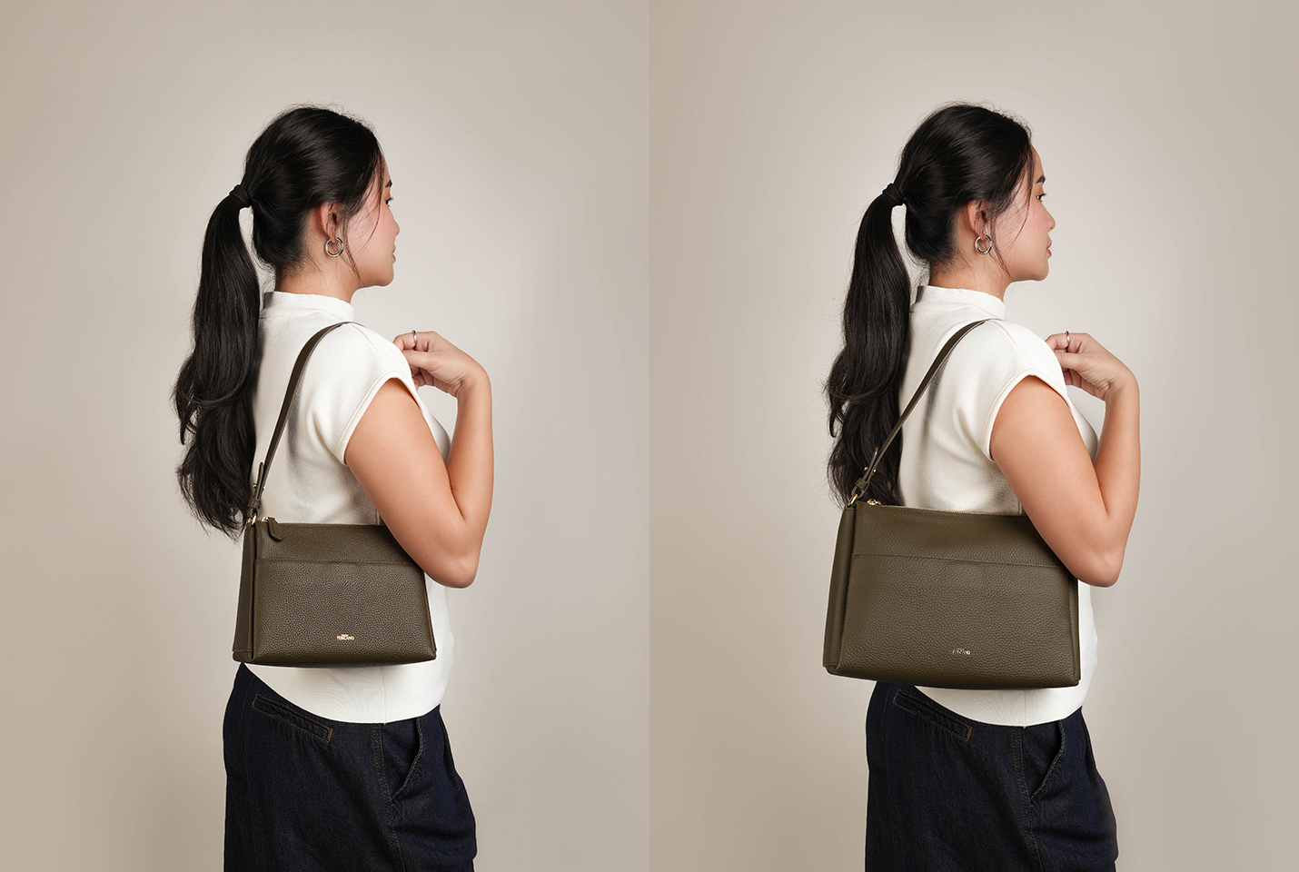 Snap on the shoulder strap and change your look in seconds.