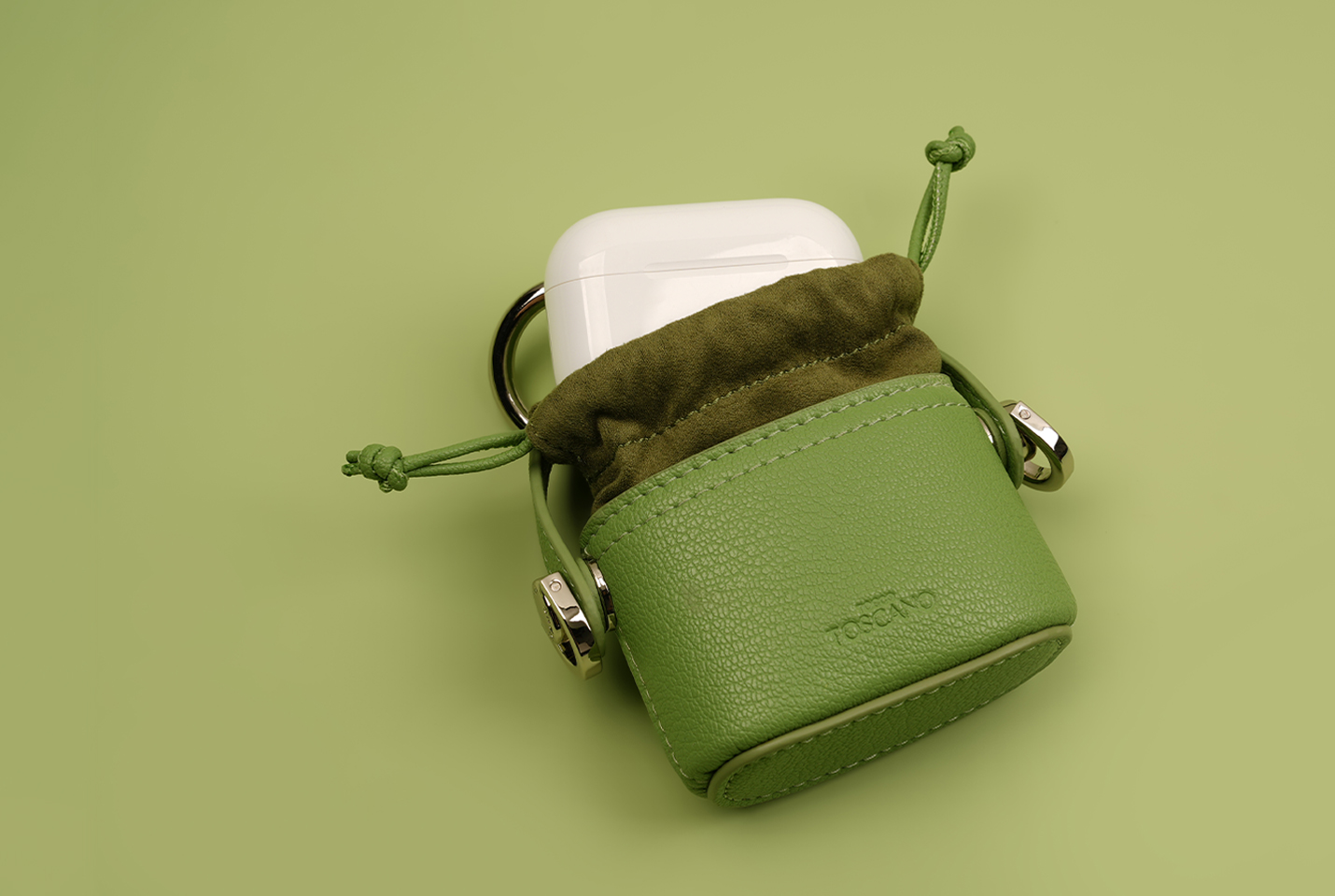 Keep your AirPods secure with this bold and vegan-friendly AirPods Bag. This compact piece features a rotatable handle, a detachable spring ring, and a drawstring to keep its contents safe. Use it as a stylish bag charm by hooking it onto your everyday bag or show it off as a micro bag—simply add on a bag strap or chain to your purchase.