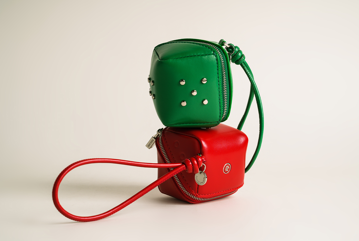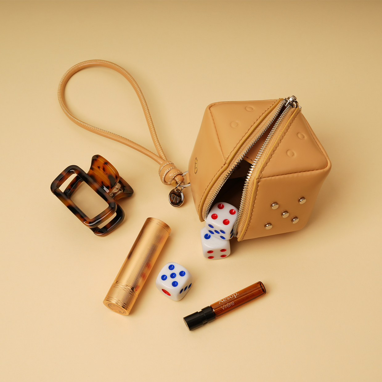 This playful dice-shaped bag charm is just the right size for mini essentials.